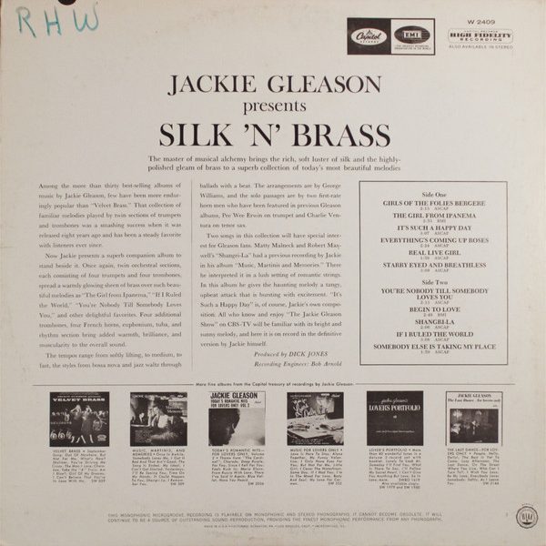 € 8.00 Media: Very Good (VG)Hoes: Very Good Plus (VG+)Jackie Gleason – Silk ‘n’ Brass (LP, Album, Mono)