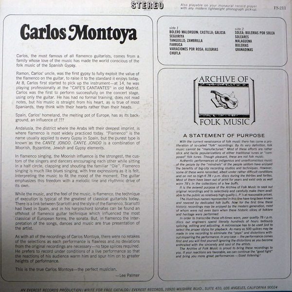 € 6.00 Media: Very Good (VG)Hoes: Very Good Plus (VG+)Carlos Montoya – Carlos Montoya (LP, Album, RE)