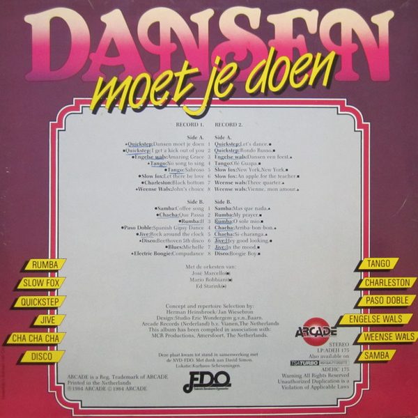 € 5.00 Media: Very Good Plus (VG+)Hoes: Very Good Plus (VG+)José Marcello, Mario Robbiani, Ed Starink – Dansen Moet Je Doen (LP, Album, Gat)