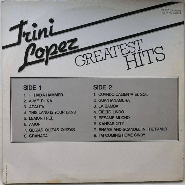 € 3.50 Media: Very Good Plus (VG+)Hoes: Very Good Plus (VG+)Trini Lopez – Greatest Hits! (LP, Album, Comp)