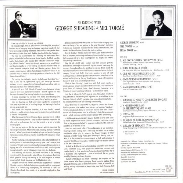 € 6.50 Media: Very Good (VG)Hoes: Good Plus (G+)George Shearing And Mel Tormé – An Evening With George Shearing And Mel Tormé (LP)