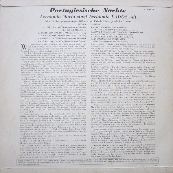 € 5.00 Media: Very Good Plus (VG+)Hoes: Very Good Plus (VG+)Fernanda Maria – Portugiesische Nächte (Fados Gesungen Von Fernanda Maria) (LP)