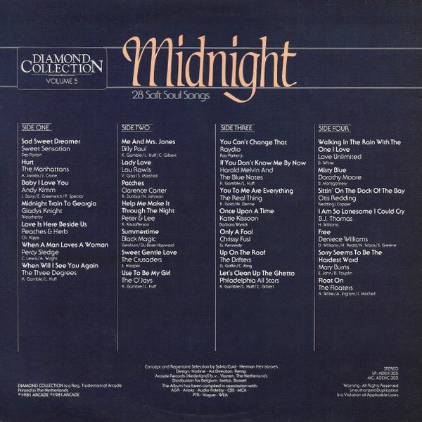 € 6.50 Media: Very Good (VG)Hoes: Very Good Plus (VG+)Various – Midnight – 28 Soft Soul Songs (2xLP, Comp, Gat)