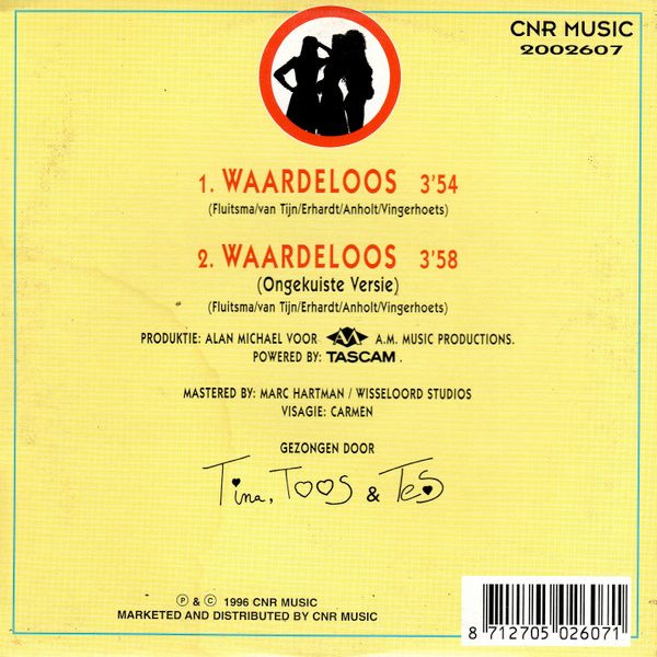 € 5.00 Media: Very Good (VG)Hoes: Very Good Plus (VG+)Tina, Toos & Tessa – Waardeloos (CD, Single)