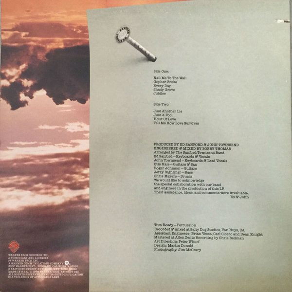 € 17.00 Media: Very Good Plus (VG+)Hoes: Very Good (VG)The Sanford-Townsend Band – Nail Me To The Wall (LP, Album, Jac)