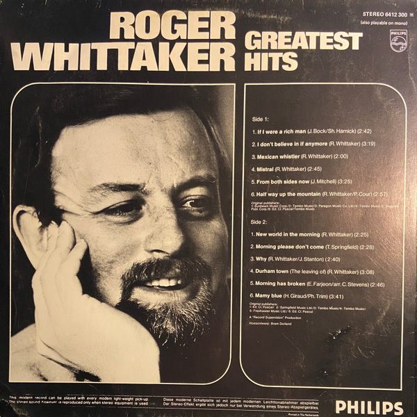 € 3.00 Media: Very Good Plus (VG+)Hoes: Good (G)Roger Whittaker – Greatest Hits (LP, Comp)