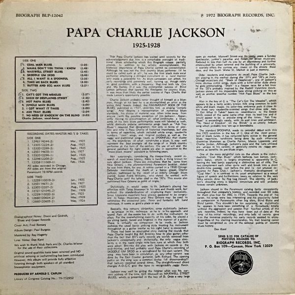€ 11.95 Media: Very Good Plus (VG+)Hoes: Very Good Plus (VG+)Papa Charlie Jackson – Papa Charlie Jackson 1925-1928 (LP, Album, Comp, Mono)