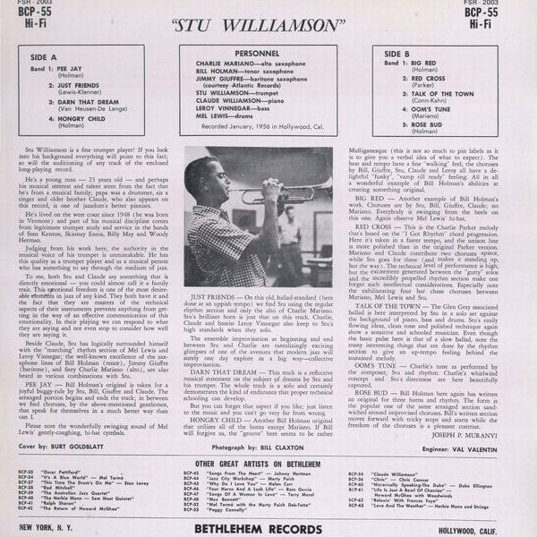€ 3.50 Media: Very Good Plus (VG+)Hoes: Very Good (VG)Stu Williamson – Stu Williamson (LP, Album, RE)