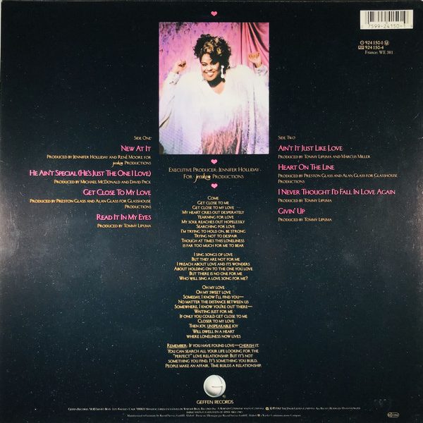 € 5.00 Media: Very Good Plus (VG+)Hoes: Very Good Plus (VG+)Jennifer Holliday – Get Close To My Love (LP, Album)