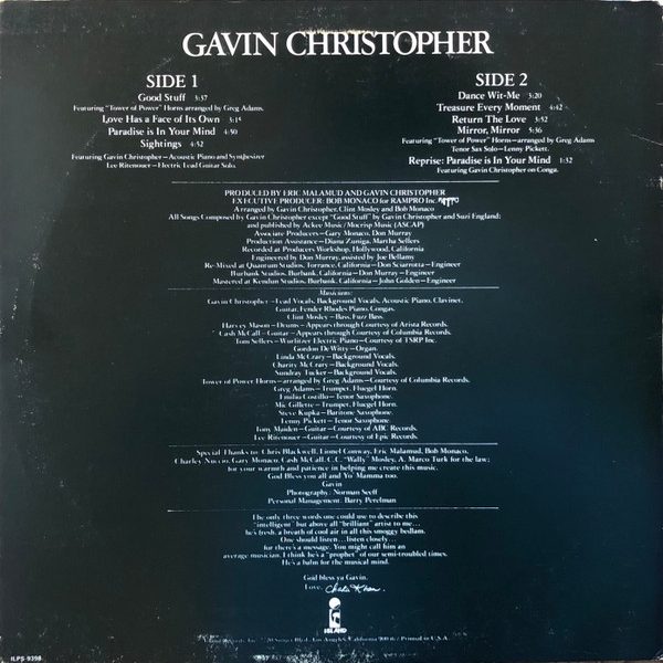 € 11.50 Media: Very Good Plus (VG+)Hoes: Very Good Plus (VG+)Gavin Christopher – Gavin Christopher (LP, Album, Pit)