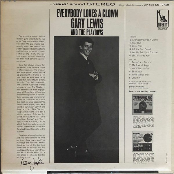 € 8.50 Media: Very Good Plus (VG+)Hoes: Very Good (VG)Gary Lewis & The Playboys – Everybody Loves A Clown (LP, Album, Ind)