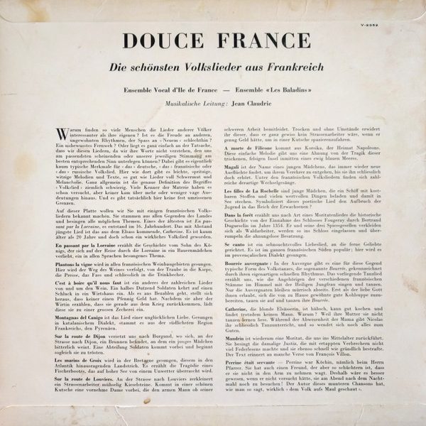 € 7.50 Media: Very Good Plus (VG+)Hoes: Very Good Plus (VG+)Ensemble Vocal D’Ile De France, Les Baladins (8) – Douce France / Die Schönsten Volkslieder Aus Frankreich (LP)