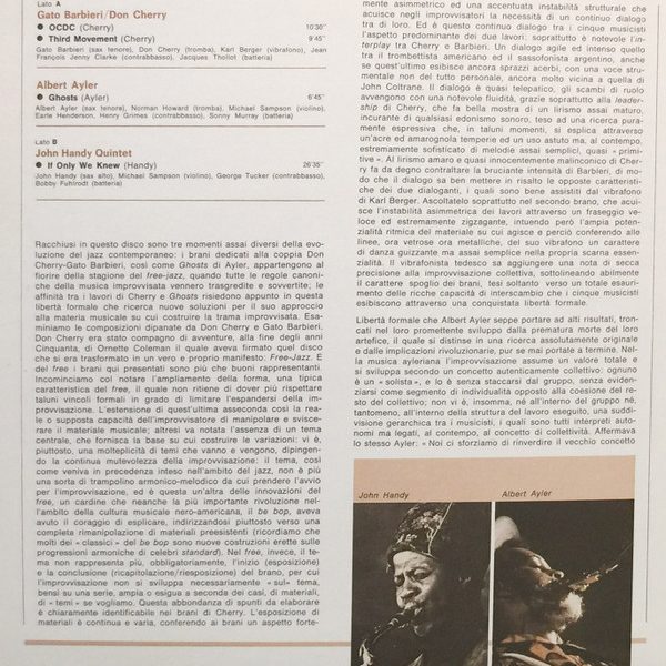 € 9.50 Media: Very Good Plus (VG+)Hoes: Very Good Plus (VG+)Gato Barbieri, Don Cherry, Albert Ayler, John Handy – I Giganti Del Jazz Vol. 6 (LP, Comp)