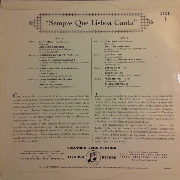 € 21.50 Media: Very Good Plus (VG+)Hoes: Very Good Plus (VG+)Augusto Camacho, Maria De Lourdes Machado, Carlos Ramos, Amália Rodrigues – Sempre Que Lisboa Canta (10″, Comp)