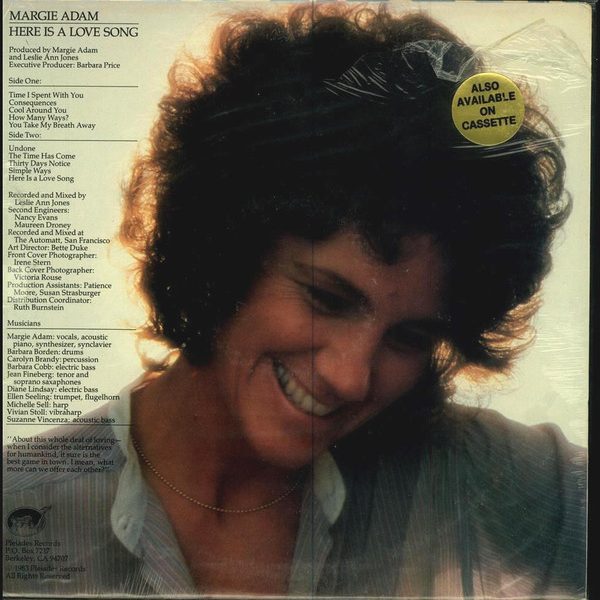 € 9.00 Media: Very Good (VG)Hoes: Very Good Plus (VG+)Margie Adam – Here Is A Love Song (LP)