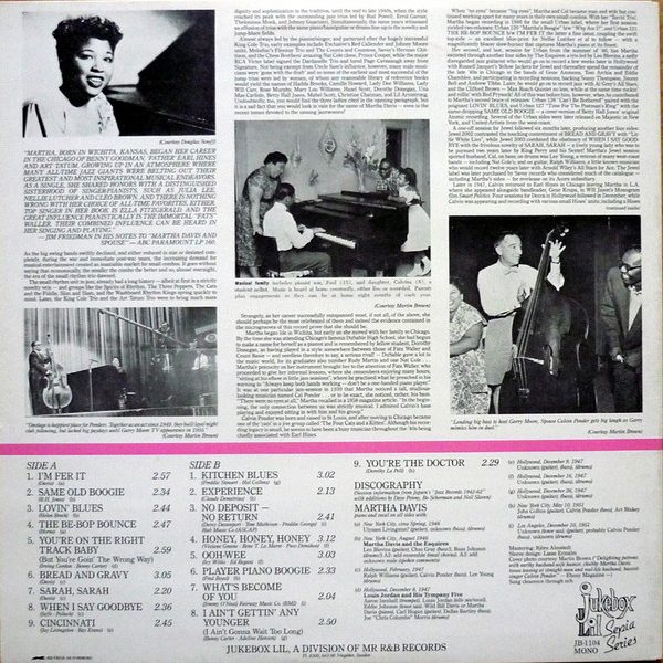 € 6.00 Media: Near Mint (NM or M-)Hoes: Very Good (VG)Martha Davis And Her Torrid Trio – You’re On The Right Track Baby (LP, Comp, Mono)