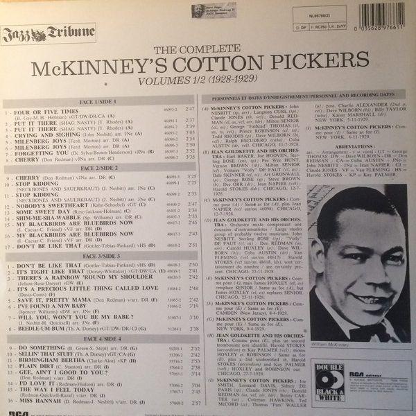 € 9.00 Media: Near Mint (NM or M-)Hoes: Near Mint (NM or M-)McKinney’s Cotton Pickers – The Complete McKinney’s Cotton Pickers Volumes 1/2 (1928-1929) (2xLP, Comp, Gat)
