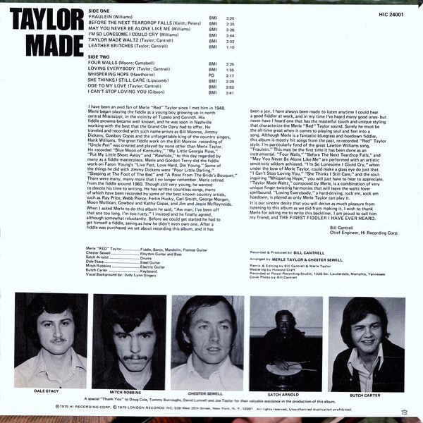 € 9.00 Media: Near Mint (NM or M-)Hoes: Very Good Plus (VG+)Merle “Red” Taylor – Taylor Made (The Soul Fiddle Of Merle “Red” Taylor) (LP, Album, Sil)
