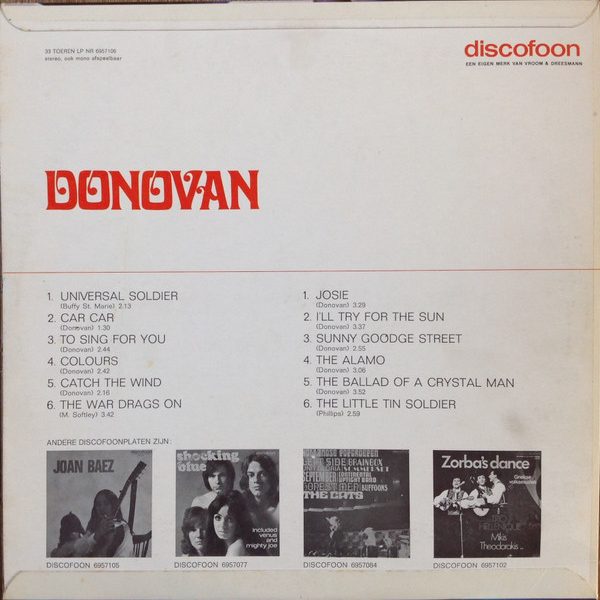 € 7.00 Media: Very Good Plus (VG+)Hoes: Very Good (VG)Donovan – Universal Soldier (LP, Comp, Mono)