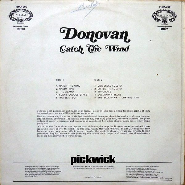 € 7.00 Media: Very Good Plus (VG+)Hoes: Very Good (VG)Donovan – Catch The Wind (LP, Comp, RE)