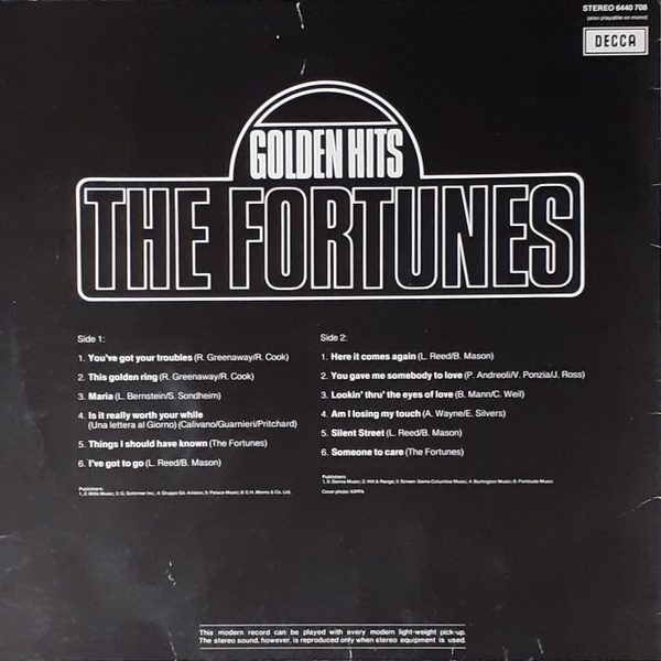 € 5.50 Media: Near Mint (NM or M-)Hoes: Very Good (VG)The Fortunes – Golden Hits (LP, Comp)