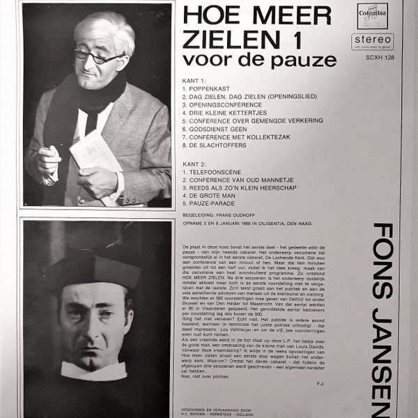 € 4.50 Media: Very Good Plus (VG+)Hoes: Very Good Plus (VG+)Fons Jansen – Hoe Meer Zielen 1 Voor De Pauze (LP)