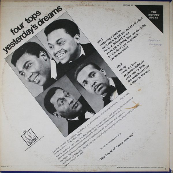 € 8.50 Media: Very Good Plus (VG+)Hoes: Very Good Plus (VG+)Four Tops – Yesterday’s Dreams (LP, Album, Ind)