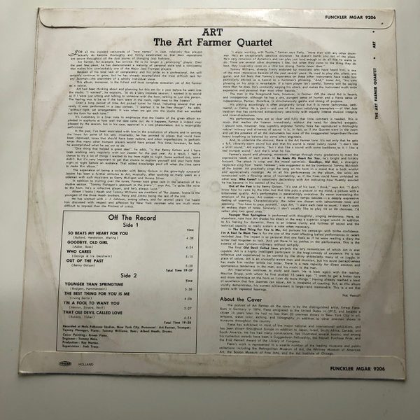 € 9.50 Media: Very Good Plus (VG+)Hoes: Very Good (VG)Art Farmer – Art (LP, Album, Mono)