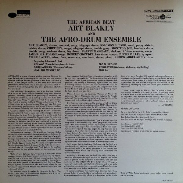 € 31.50 Media: Near Mint (NM or M-)Hoes: Very Good Plus (VG+)Art Blakey & The Afro-Drum Ensemble – The African Beat (LP, Album, RE)