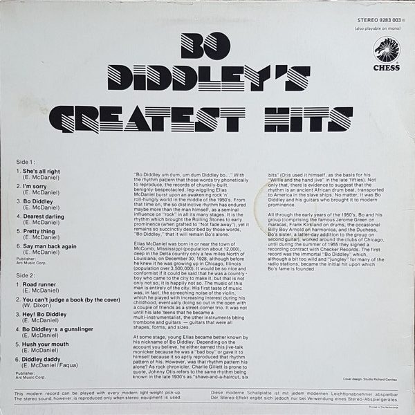 € 9.50 Media: Very Good (VG)Hoes: Very Good Plus (VG+)Bo Diddley – Bo Diddley’s Greatest Hits (LP, Comp)