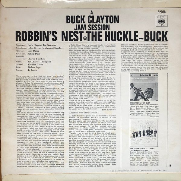 € 5.00 Media: Very Good (VG)Hoes: Very Good (VG)Buck Clayton – “Robbin’s Nest – The Huckle-Buck” A Buck Clayton Jam Session (LP, Album, Fli)
