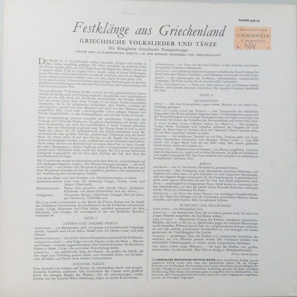 € 4.50 Media: Good (G)Hoes: Very Good (VG)The Royal Greek Festival Company – Festklänge Aus Griechenland (LP, Mono)