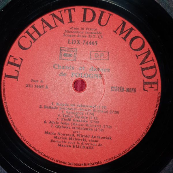 € 9.50 Media: Near Mint (NM or M-)Hoes: Very Good Plus (VG+)Marian Blicharz – Chants Et Danses de Pologne (LP)