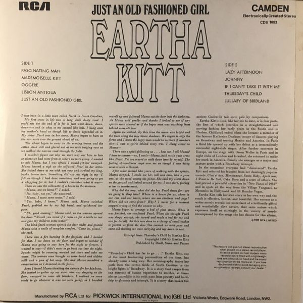 € 5.00 Media: Very Good (VG)Hoes: Very Good (VG)Eartha Kitt With Henri René And His Orchestra – Just An Old Fashioned Girl (LP, Album, RE)