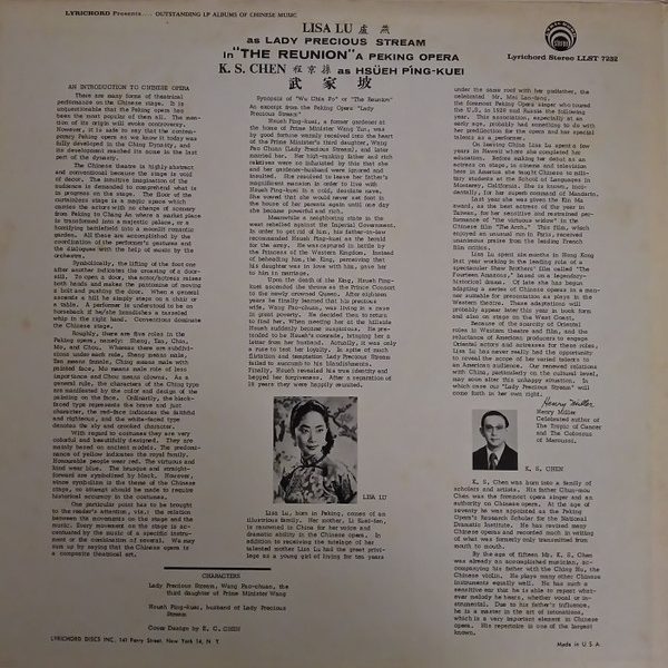 € 9.00 Media: Very Good Plus (VG+)Hoes: Very Good Plus (VG+)Lisa Lu, K S Chen – Chinese Opera: “The Reunion”, A Peking Opera (LP, Album, Blu)