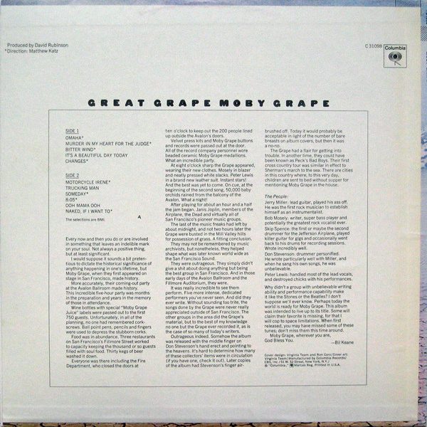 € 10.00 Media: Near Mint (NM or M-)Hoes: Very Good Plus (VG+)Moby Grape – Great Grape (LP, Comp, Ter)