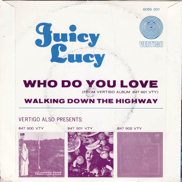€ 5.00 Media: Very Good (VG)Hoes: Very Good (VG)Juicy Lucy – Who Do You Love (7″, Single)