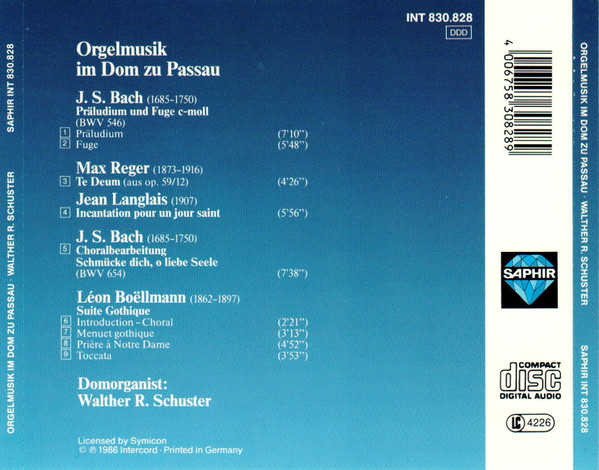 € 9.00 Media: Near Mint (NM or M-)Bach* • Reger* • Langlais* • Boëllmann* – Walther R. Schuster – Orgelmusik Im Dom Zu Passau (Die Größte Kirchenorgel Der Welt) (CD, Album, RE)