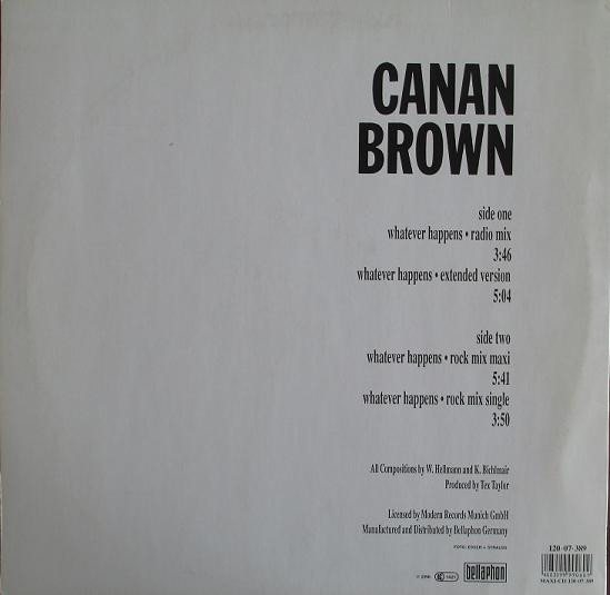 € 7.50 Media: Near Mint (NM or M-)Hoes: Very Good Plus (VG+)Canan Brown – Whatever Happens (12″, Maxi)