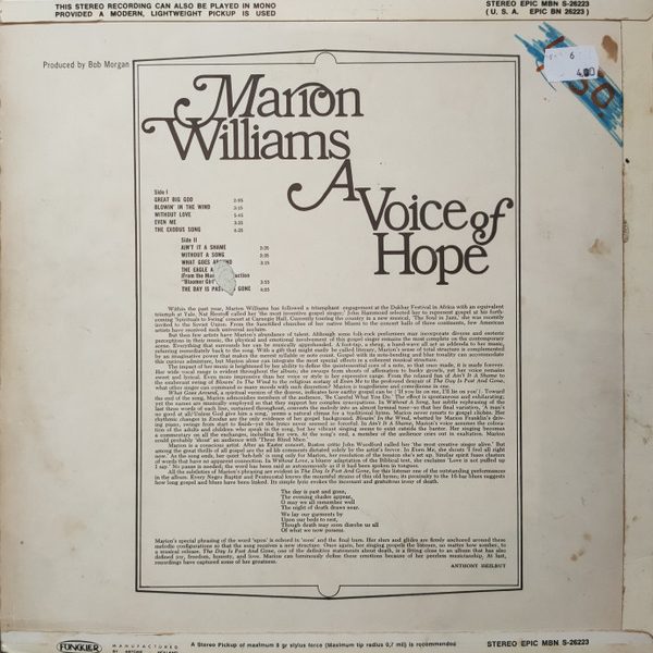 € 6.00 Media: Very Good Plus (VG+)Hoes: Good Plus (G+)Marion Williams – A Voice Of Hope (LP, Album, RE)