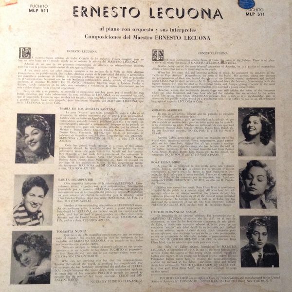€ 7.50 Media: Very Good (VG)Hoes: Very Good (VG)Ernesto Lecuona – Al Piano Con Orquesta Y Sus Intérpretes (LP, Album)