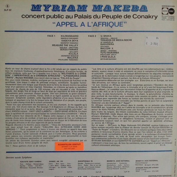 € 5.00 Media: Very Good (VG)Hoes: Very Good (VG)Myriam Makeba* – Appel A L’Afrique (LP, Album)