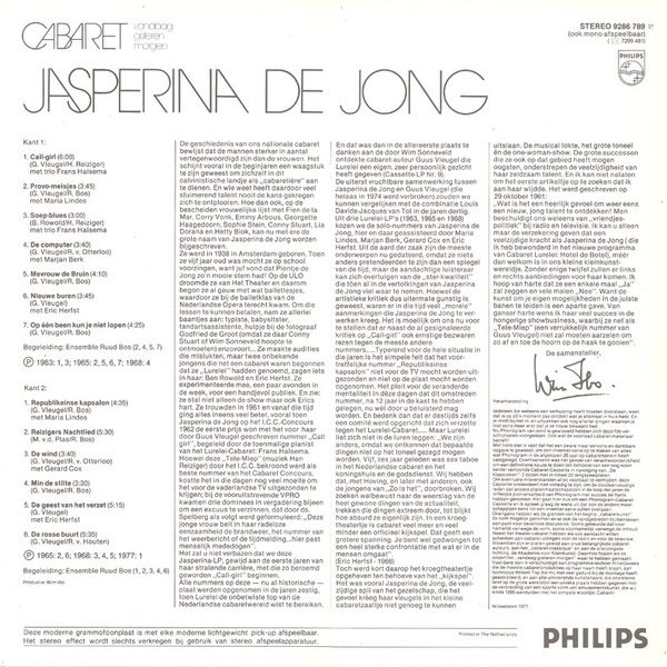 € 6.50 Media: Very Good (VG)Hoes: Very Good Plus (VG+)Jasperina de Jong – Cabaret 3 – Jasperina de Jong (LP, Comp)