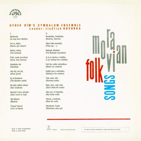 € 8.50 Media: Very Good Plus (VG+)Hoes: Very Good Plus (VG+)Jindřich Hovorka & Cimbálová Muzika Hynka Bíma – Moravian Folk Songs (LP)
