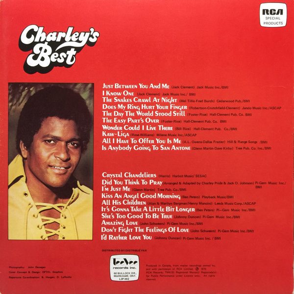 € 5.00 Media: Good Plus (G+)Hoes: Very Good Plus (VG+)Charley Pride – Charley’s Best (LP, Comp)