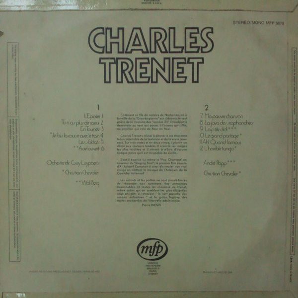 € 7.50 Media: Very Good Plus (VG+)Hoes: Very Good Plus (VG+)Charles Trenet – Charles Trenet (LP, Comp, Mono, Duo)