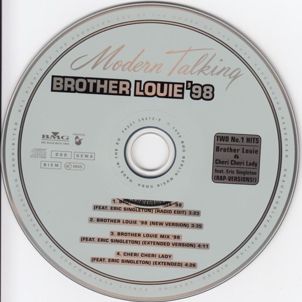 € 6.50 Media: Very Good Plus (VG+)Hoes: Very Good Plus (VG+)Modern Talking – Brother Louie ’98 (CD, Maxi)