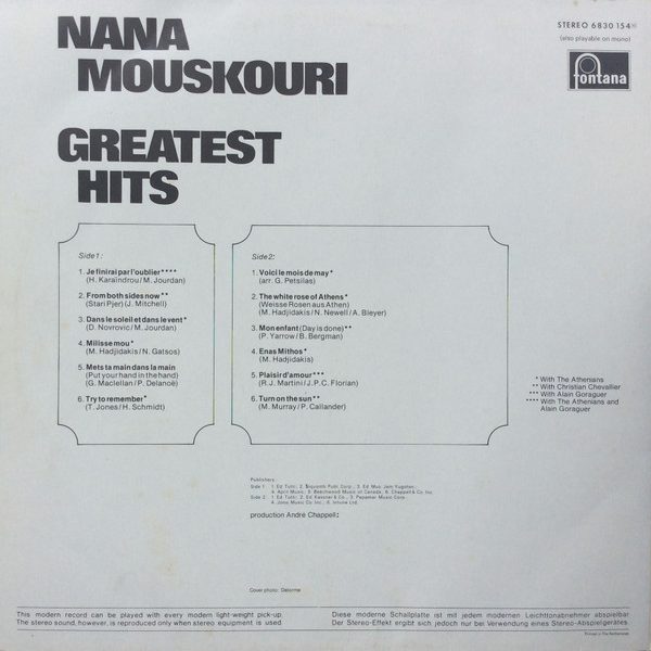 € 8.50 Media: Very Good Plus (VG+)Hoes: Very Good Plus (VG+)Nana Mouskouri – Greatest Hits (LP, Comp)