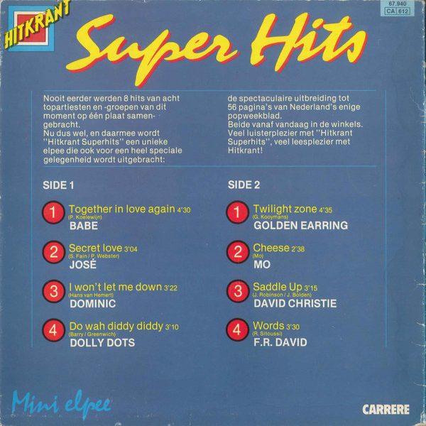 € 9.50 Media: Good Plus (G+)Hoes: Good Plus (G+)Various – Hitkrant Super Hits (10″, MiniAlbum, Comp)
