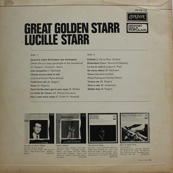 € 5.00 Media: Very Good (VG)Hoes: Very Good (VG)Lucille Starr – Great Golden Starr (LP, Album, Mono)